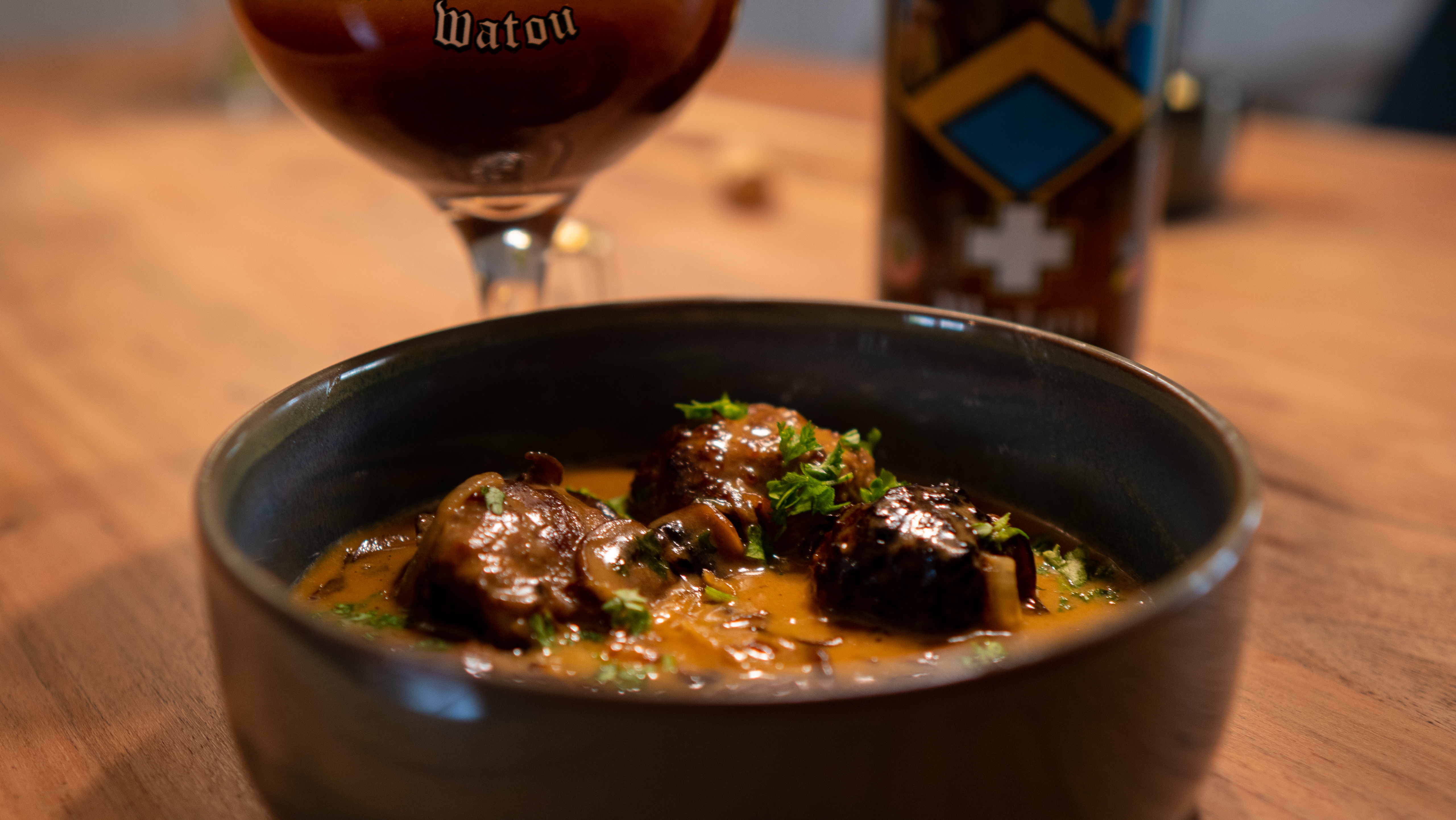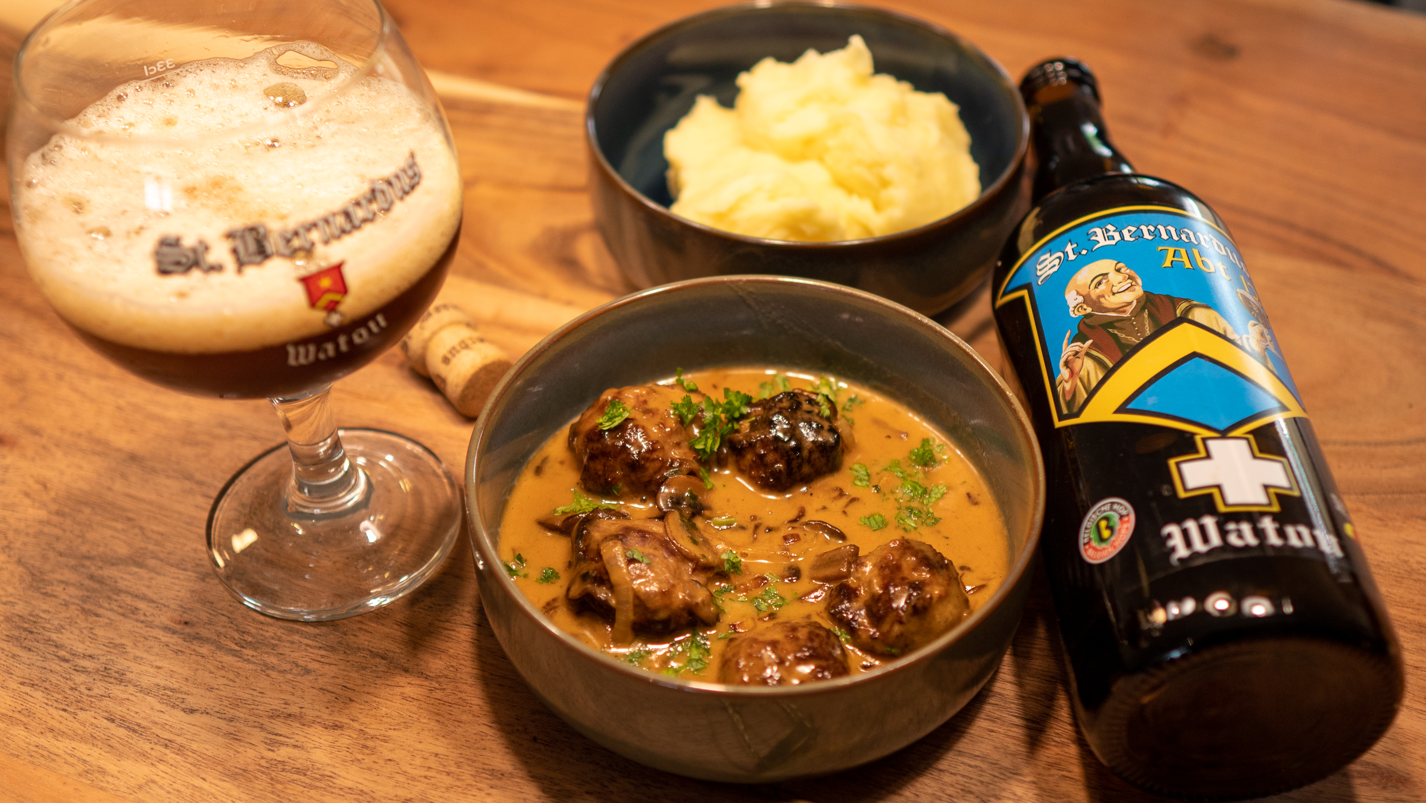 Seit ich das St. Bernardus Buch gelesen habe juckte es mich in den Fingern eins der Rezepte nachzukochen. Jetzt habe ich es endlich geschafft. Die Wahl fiel auf Fleischbällchen in Rahmsauce mit dem Abt 12 Quadrupel.
